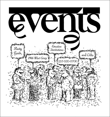 Logo and advertising for an upscale party goods store in the wealthy River Oaks neighborhood of Houston Texas.