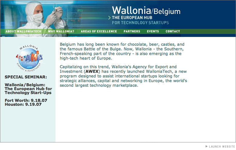 Website Design promoting the advantages of starting a global company in the high-tech Wallonia Region of Belgium.
